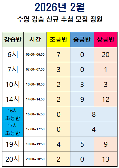 2026년 2월 수영강습 모집안내