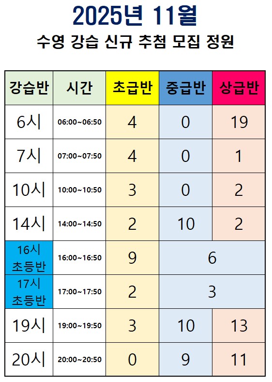 2025년 11월 수영강습 모집안내